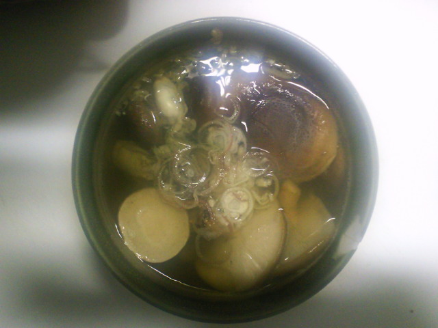 小屋で夕食を食べたので、小腹満たしと寒さしのぎのお吸い物だけの夜食でした。