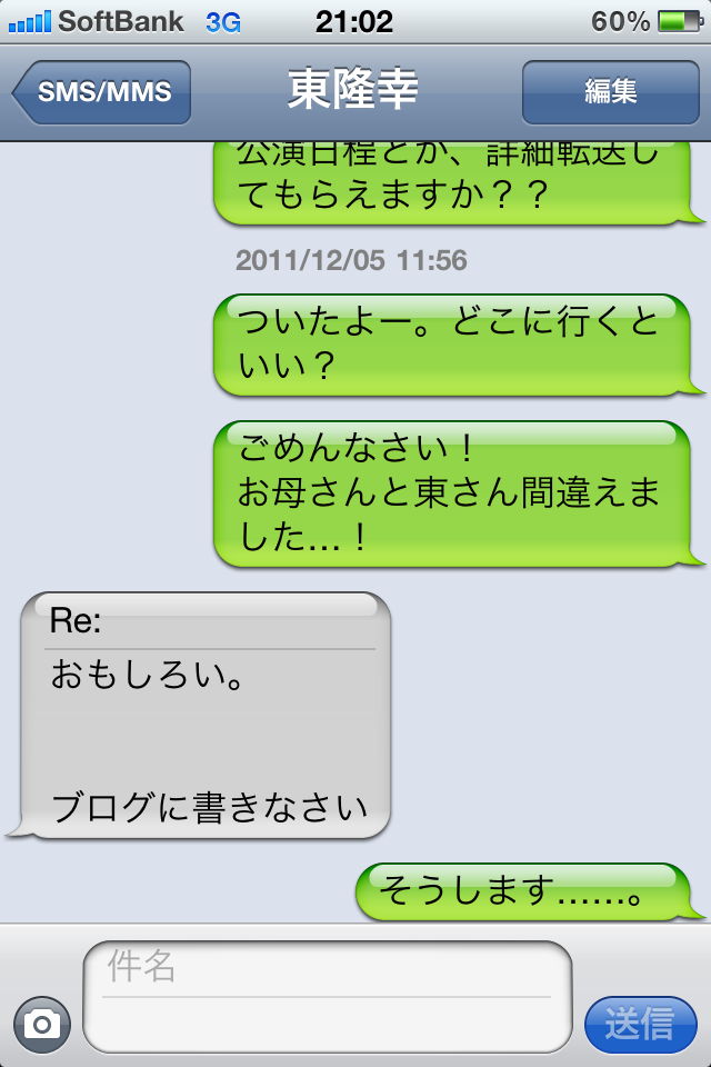 同じ時間帯に2人の人と同時にメールするもんじゃありませんね。